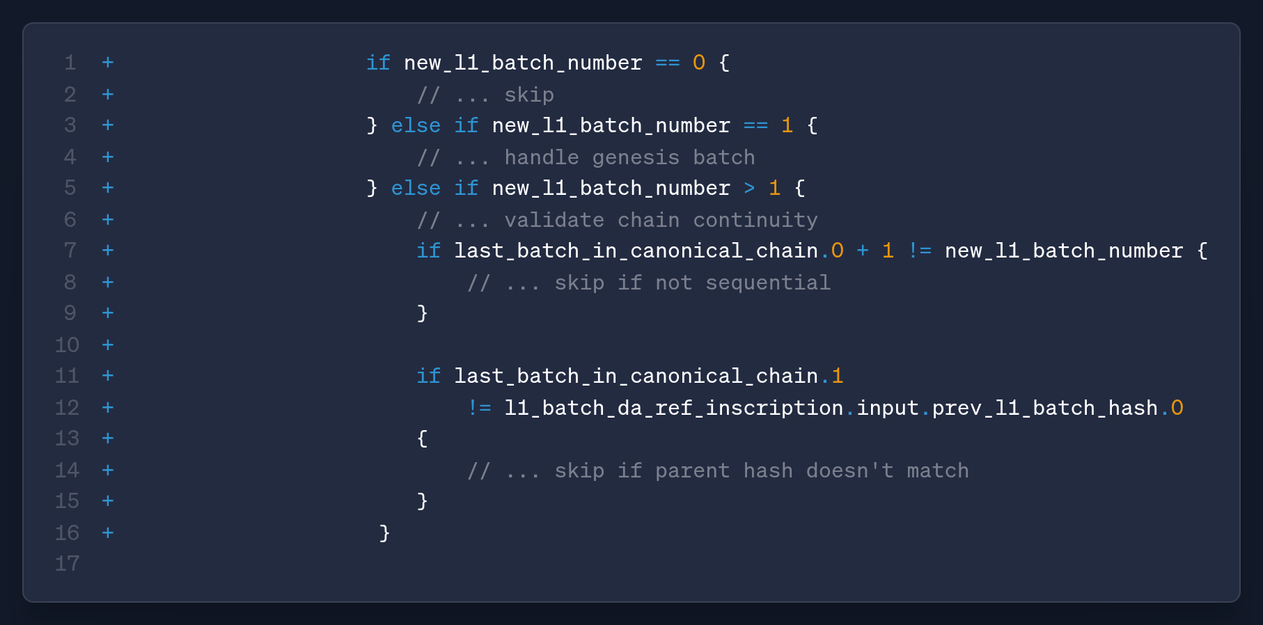 - Sequential Batches (>1): For all subsequent batches, it enforces two critical rules for maintaining chain integrity: